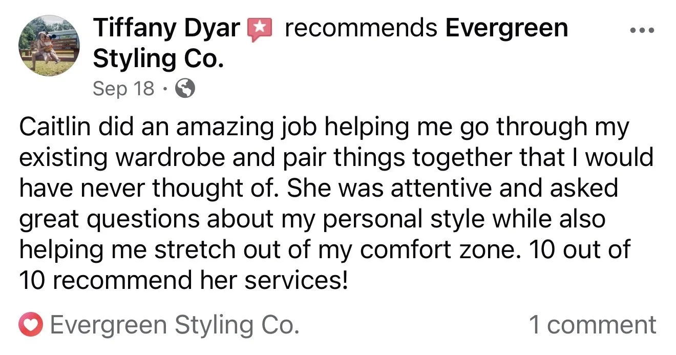 The Closet Clarity Method is a transformative, three-step styling experience designed to help you reconnect with your personal style, feel confident in your clothes, and build a wardrobe that truly supports your life right now.